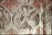 Zwei Heilige sind an den Armen aufgehängt, Bildfeld