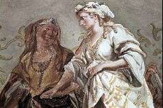 Ostseite: Die Braut wird von ihrer Mutter herangeführt,