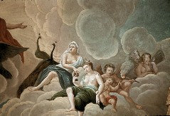 Ausschnitt über Jupiter und Nebenbild: Putten mit Attributen