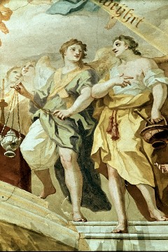Himmelsszene, zwei Genien verkünden den Sipontinern den Sieg, Aufn. Hausegger-Grimm, Lilli, 1943/1945