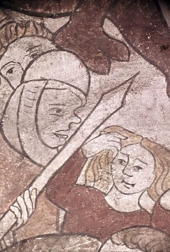 Standort: Mendig-Niedermendig, Katholische Pfarrkirche Sankt Cyriakus, Kirche (katholisch), Mittelschiff (Nordwand), Laibung der 4. Arkade, Ostseite