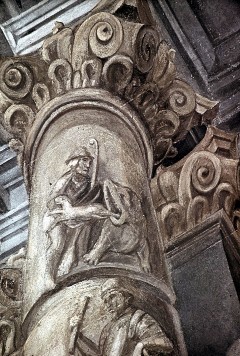 Ausschnitt, Nordwestecke: gemalte Säule mit Relief (David