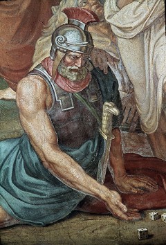 Ausschnitt rechts: Soldaten würfeln um den Rock Christi, Aufn. Bollert, Eva, 1943/1944