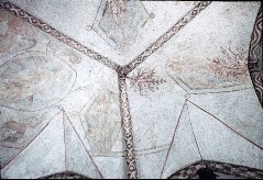 Evangelistensymbolen und Heiligen (Majestas Domini), Gewölbedekoration, Erhaltung: Fragment
