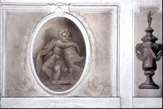 Putten mit den Waffen des Mars und flankierende Vasen, Supraporte