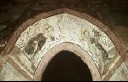 : Bogen mit zwei Heiligen, Bildfeld, Standort: Mappach, Evangelische Kirche Kirche (evangelisch), Chorturm, Südwand, Fensterlaibung